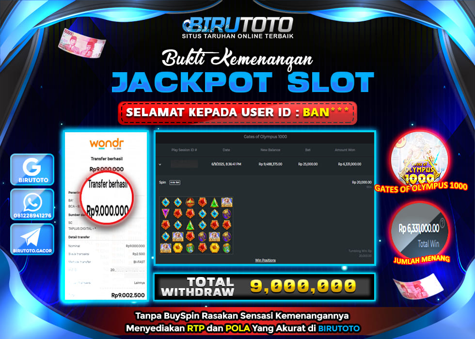 BIRUTOTO JACKPOT SLOT GATES OF OLYMPUS 1000 Rp.9.000.000 LUNAS