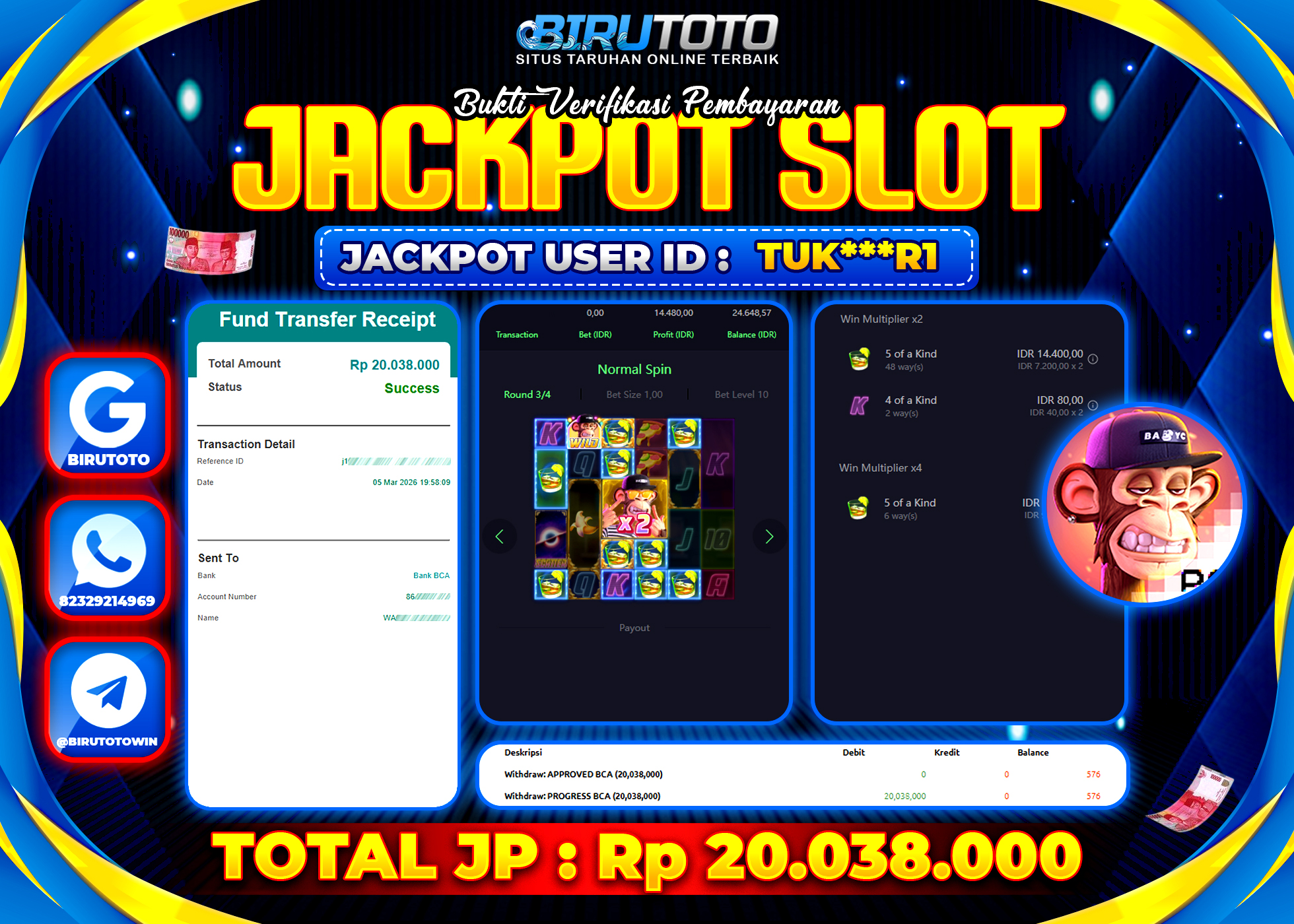 BIRUTOTO JACKPOT SLOT WILD APE #3258 Rp.20.038.000 LUNAS