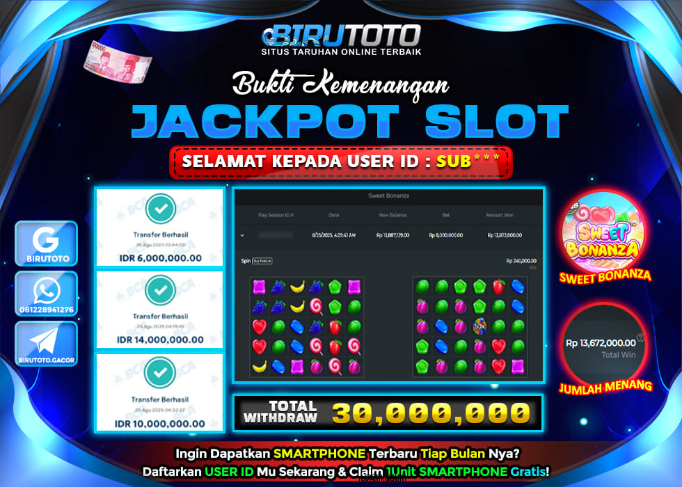 BIRUTOTO JACKPOT SLOT SWEET BONANZA Rp.30.000.000 LUNAS