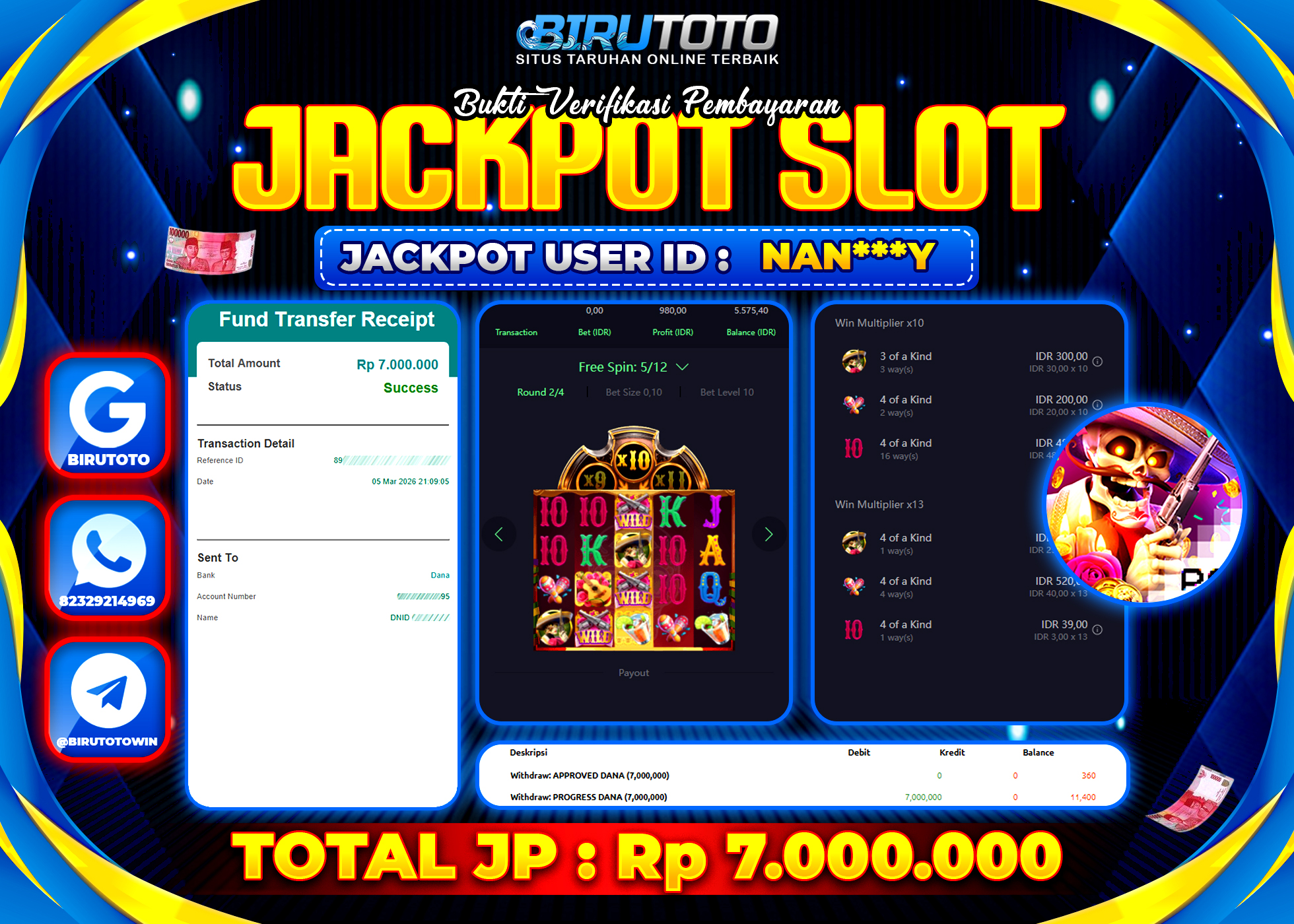 BIRUTOTO JACKPOT SLOT MAHJONG WINS 2 Rp.6.000.000 LUNAS