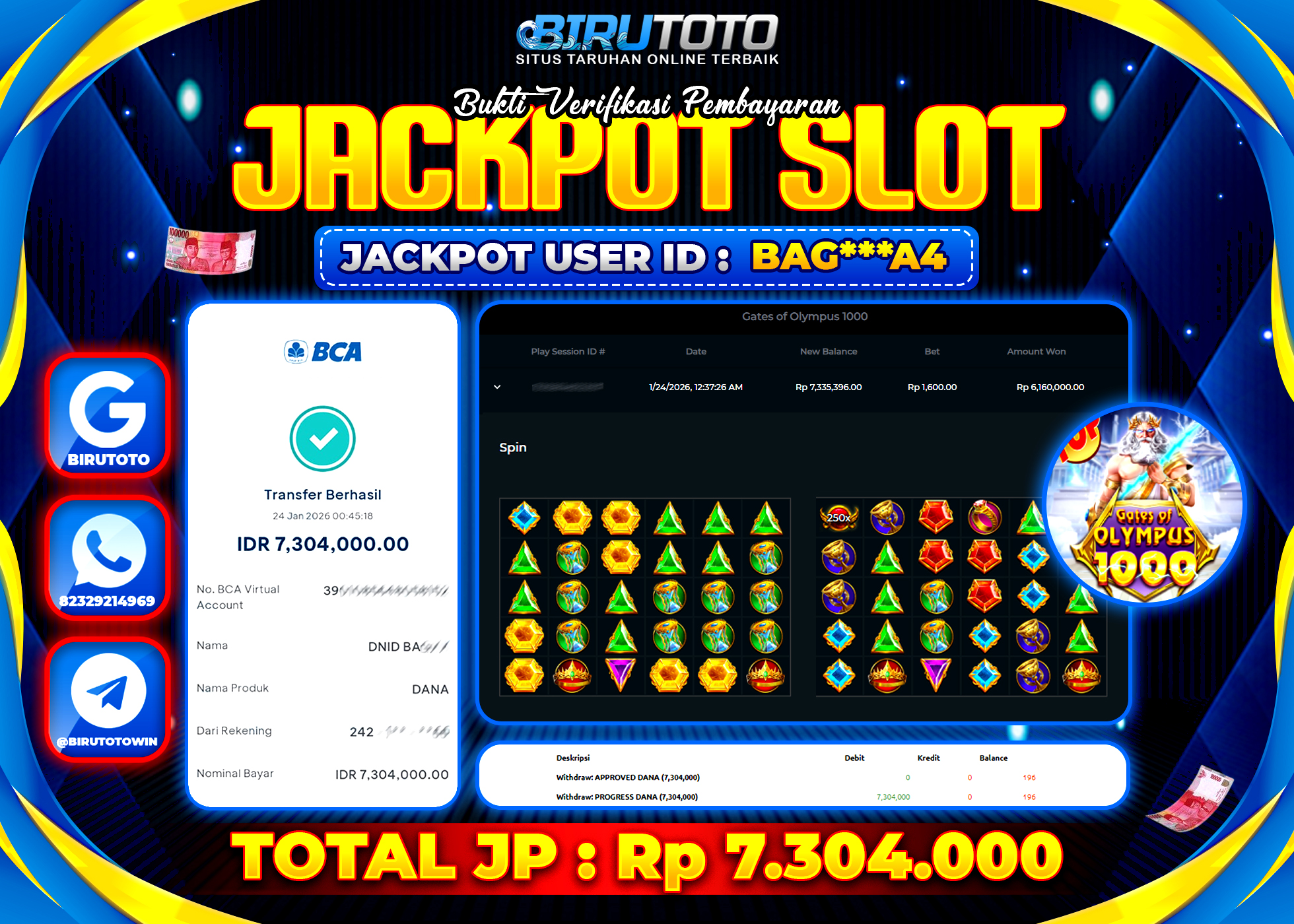 BIRUTOTO JACKPOT SLOT GATES OF OLYMPUS 1000 Rp.7.304.000 LUNAS