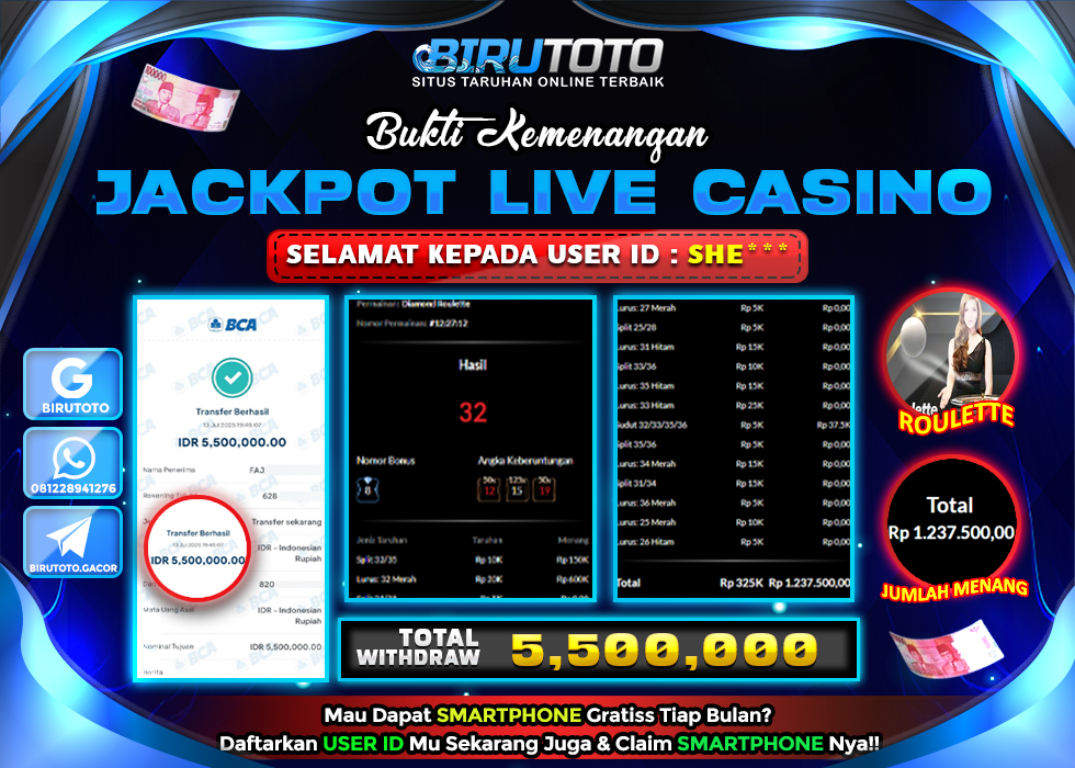 BIRUTOTO JACKPOT LIVE CASINO ROULETTE Rp.5.500.000 LUNAS