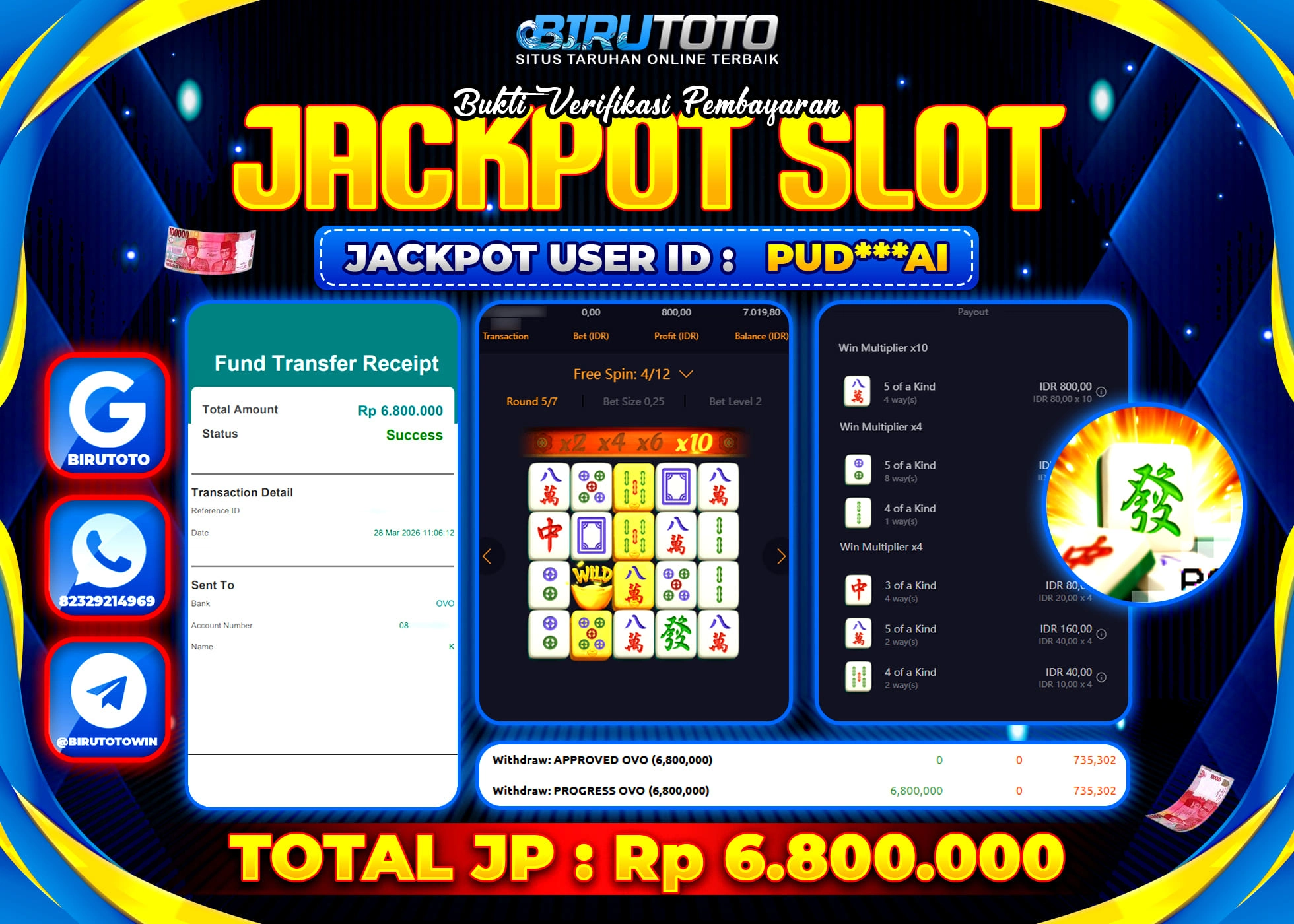 BIRUTOTO JACKPOT SLOT MAHJONG WAYS Rp.6.800.000 LUNAS