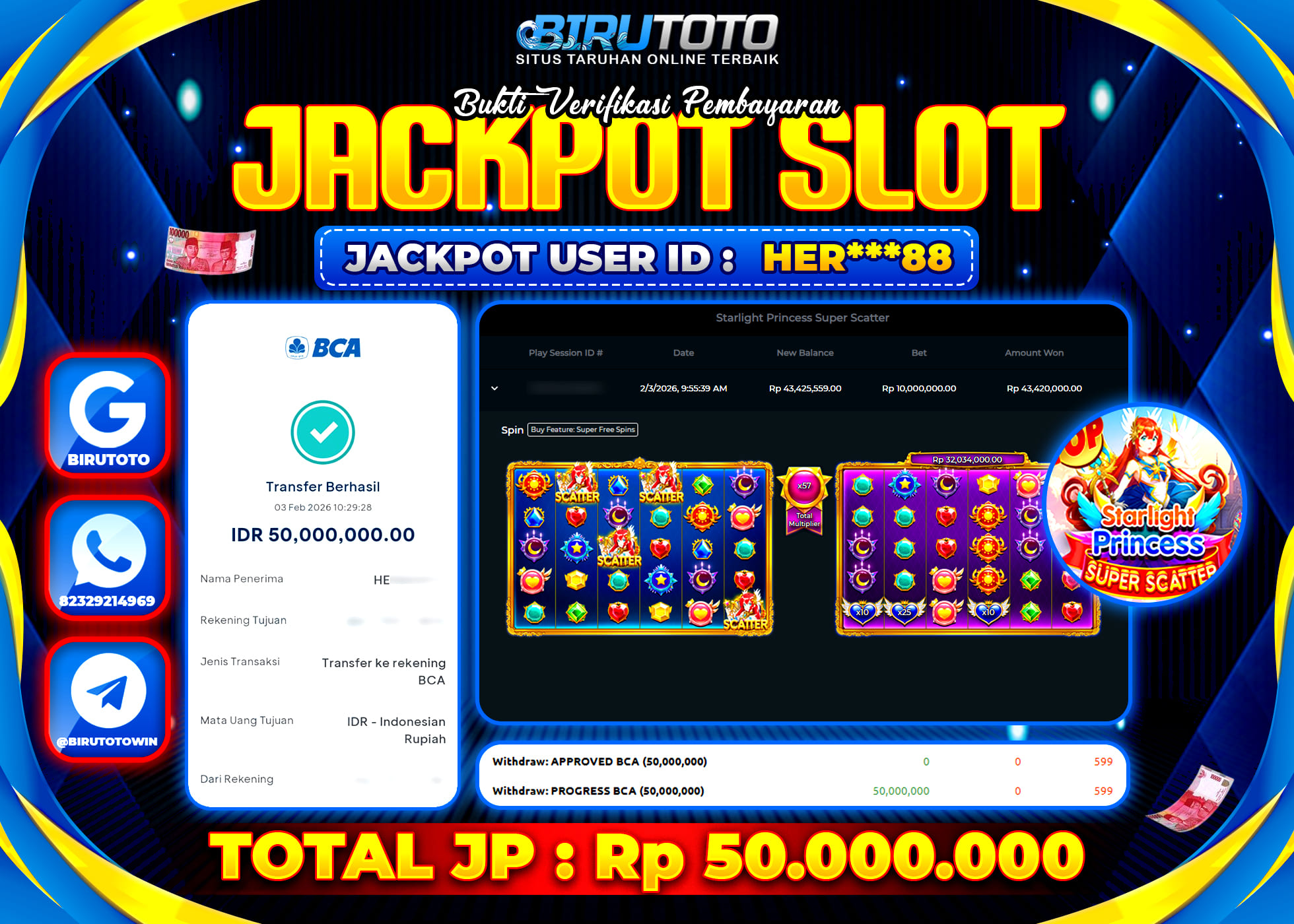 BIRUTOTO JACKPOT SLOT STARLIGHT PRINCES SUPER SCATTER Rp.50.000.000 LUNAS