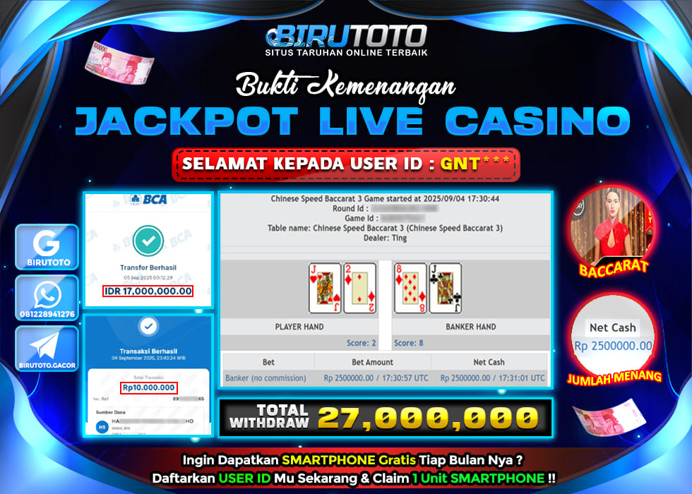 BIRUTOTO JACKPOT LIVE CASINO BLACKJACK LOBBY Rp.27.000.000 LUNAS