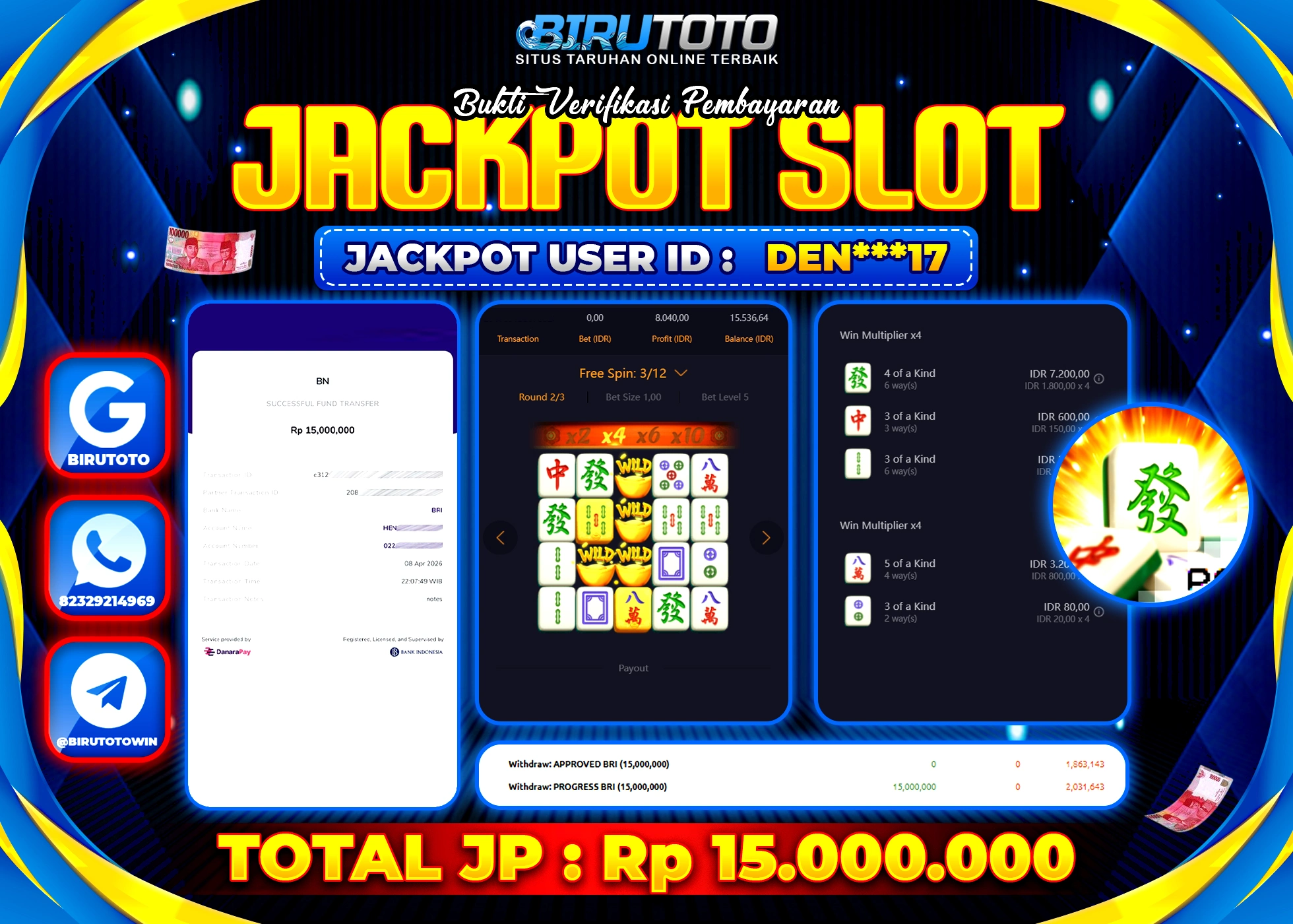 BIRUTOTO JACKPOT SLOT MAHJONG WAYS Rp.15.000.000 LUNAS