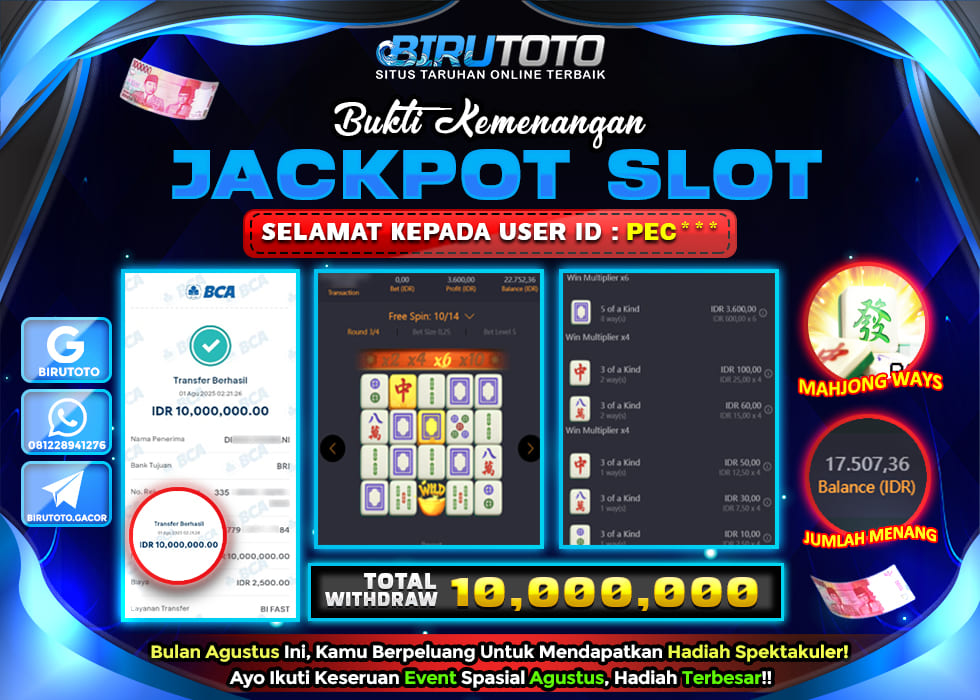 BIRUTOTO JACKPOT SLOT MAHJONG WAYS Rp.10.000.000 LUNAS