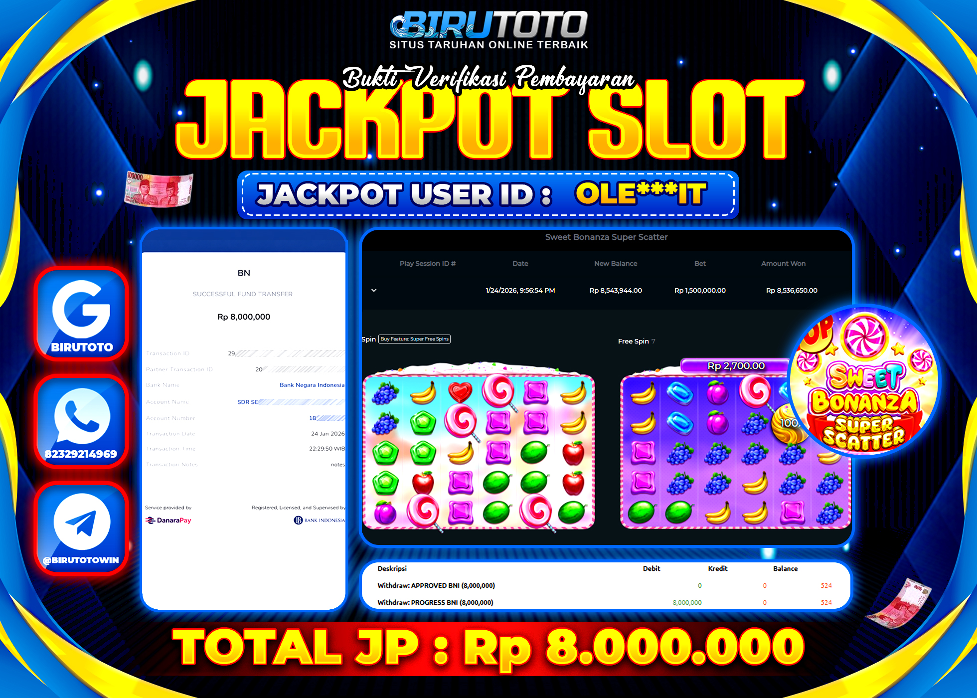 BIRUTOTO JACKPOT SLOT SWEET BONANZA 1000 Rp.8.000.000 LUNAS