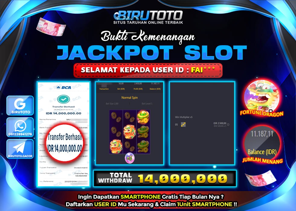 BIRUTOTO JACKPOT SLOT FORTUNE DRAGON Rp.14.000.000 LUNAS