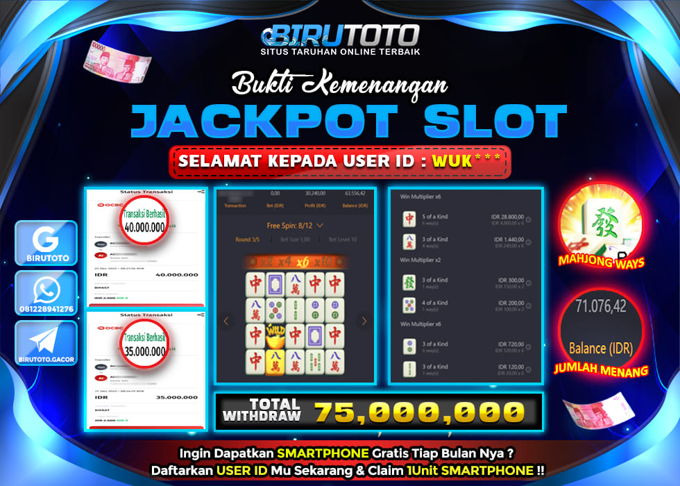 BIRUTOTO JACKPOT SLOT MAHJONG WAYS Rp.75.000.000 LUNAS
