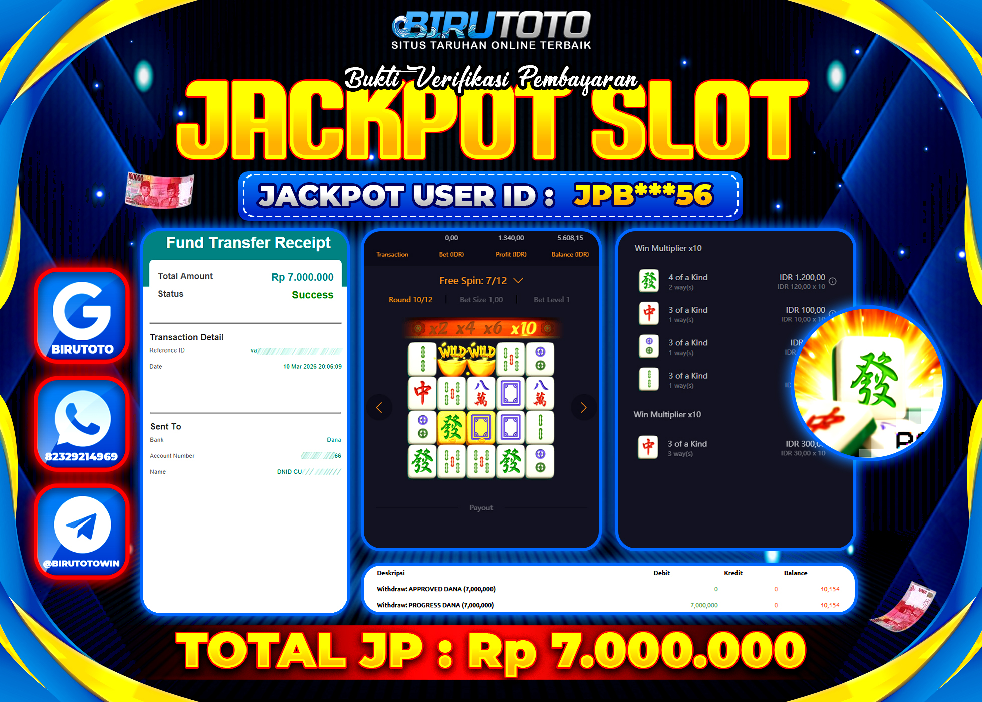 BIRUTOTO JACKPOT SLOT MAHJONG WAYS Rp.7.000.000 LUNAS