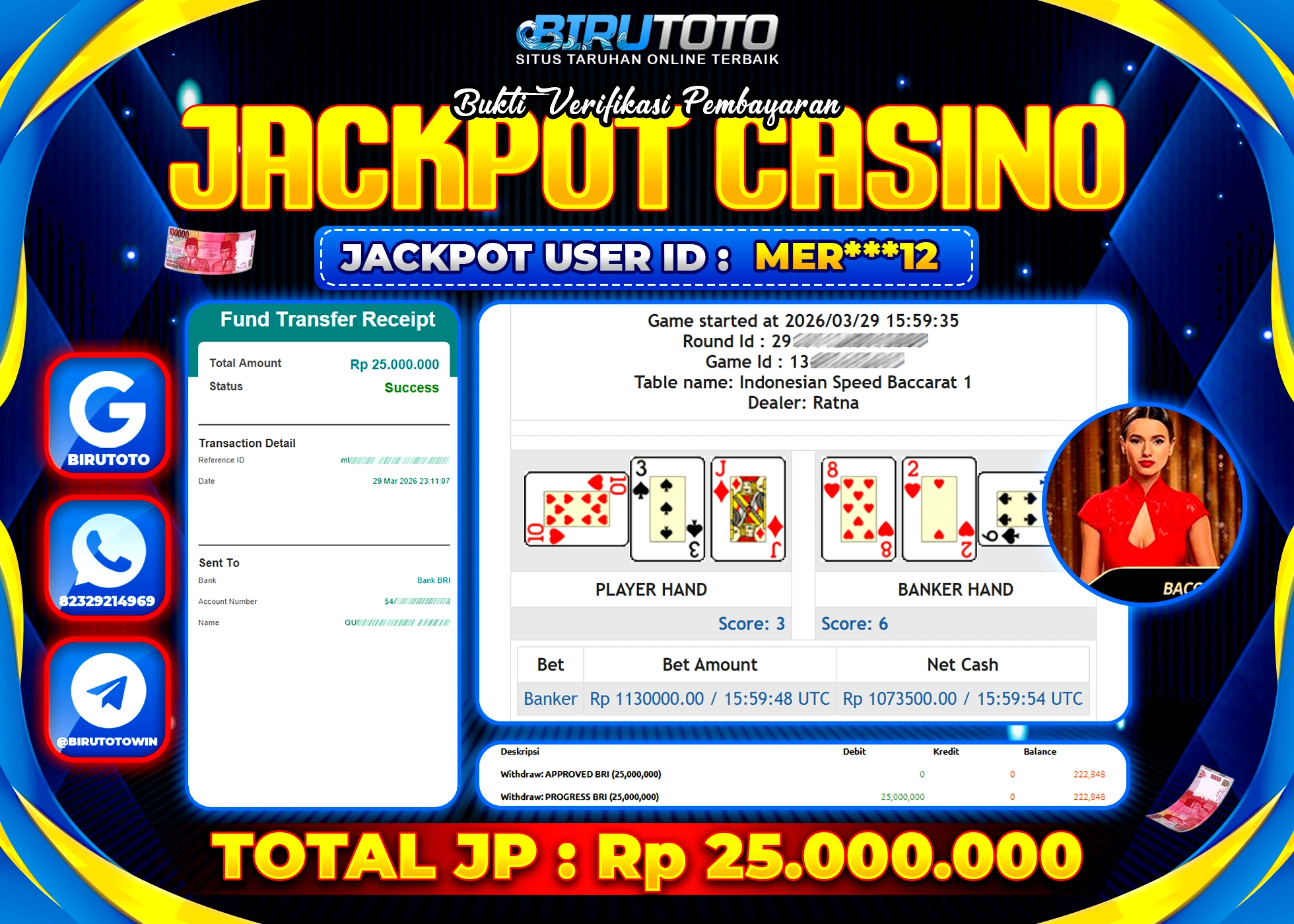 BIRUTOTO JACKPOT CASINO BACCARAT Rp.29.000.000 LUNAS