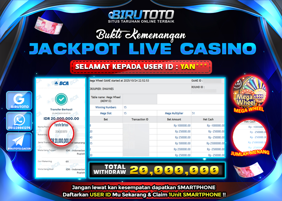 BIRUTOTO JACKPOT LIVE CASINO MEGA WHEEL Rp.20.000.000 LUNAS