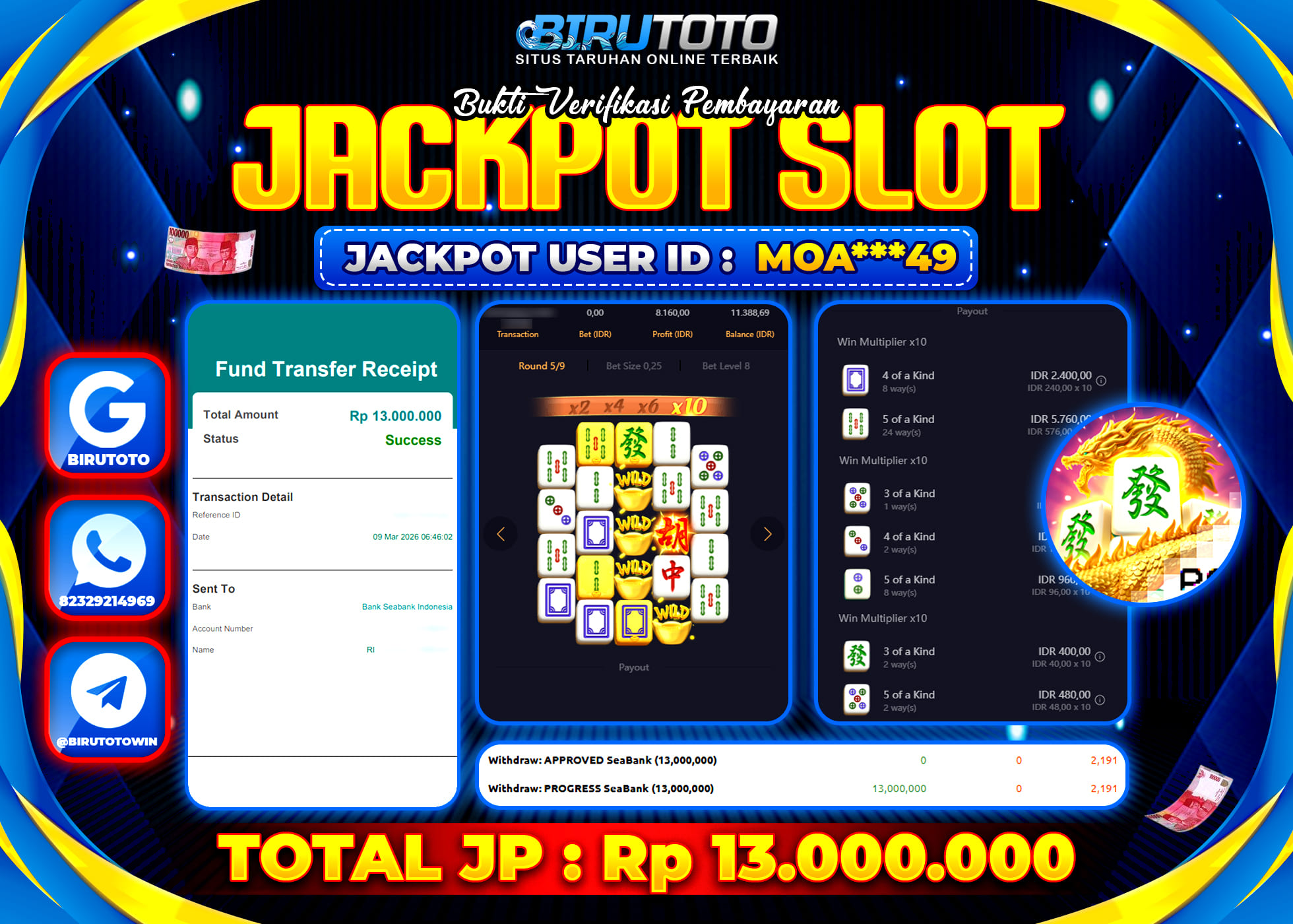 BIRUTOTO JACKPOT SLOT MAHJONG WAYS 2 Rp.13.000.000 LUNAS
