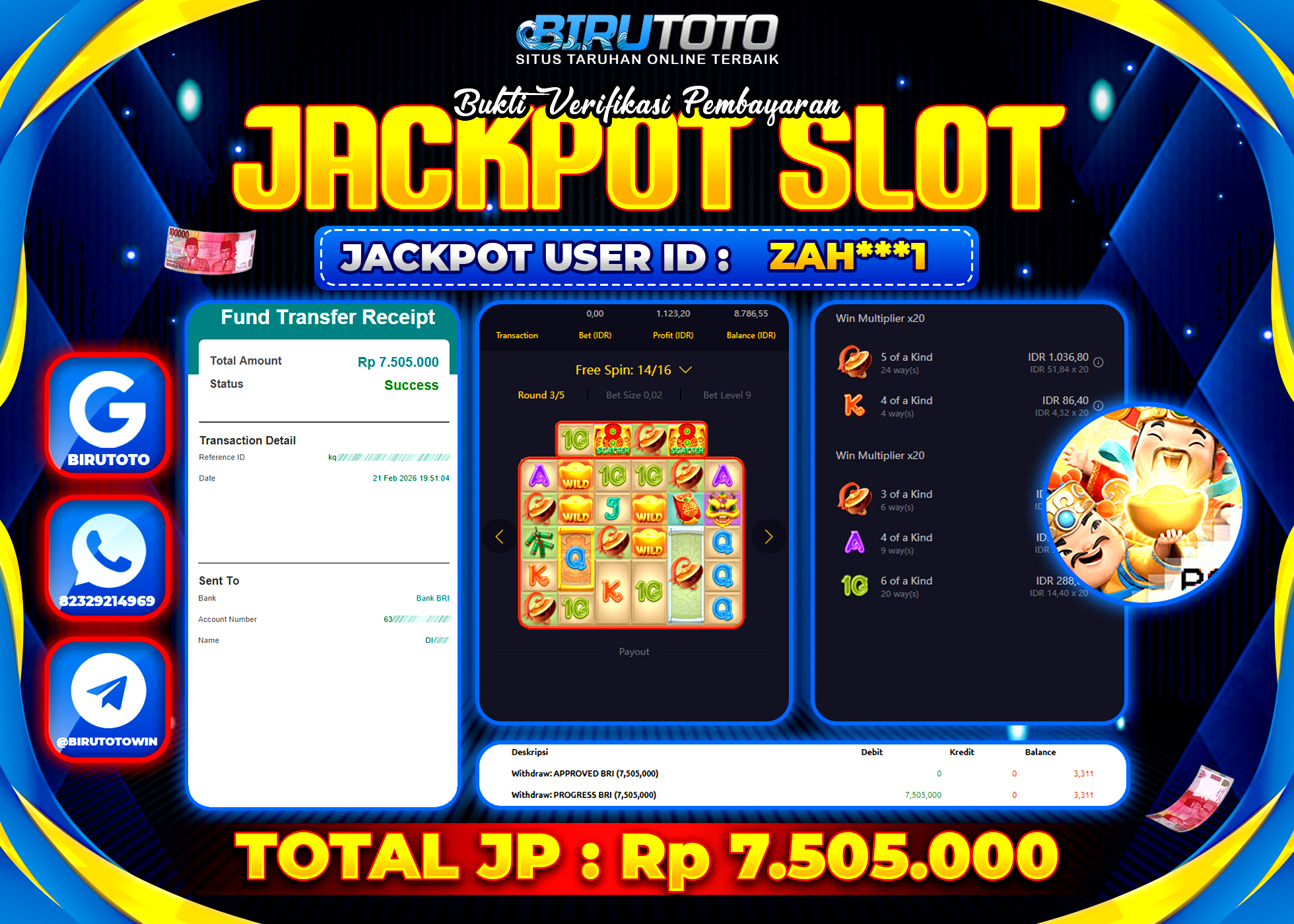 Selamat Kepada Member BIRUTOTO ZAH***1 Telah Jackpot Di SLOT CAI SHEN WINS