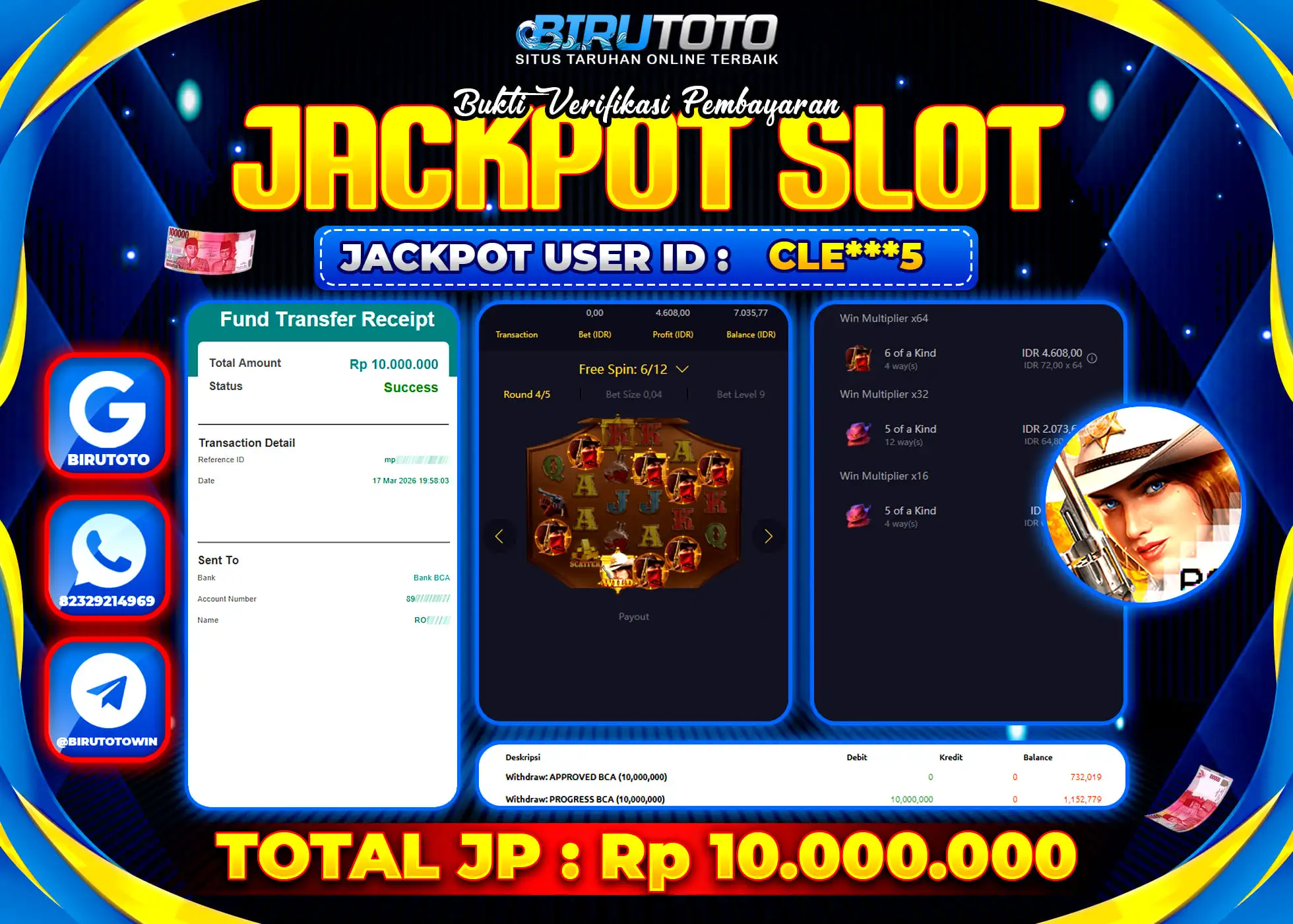 BIRUTOTO JACKPOT SLOT MAHJONG Rp.10.000.000 LUNAS