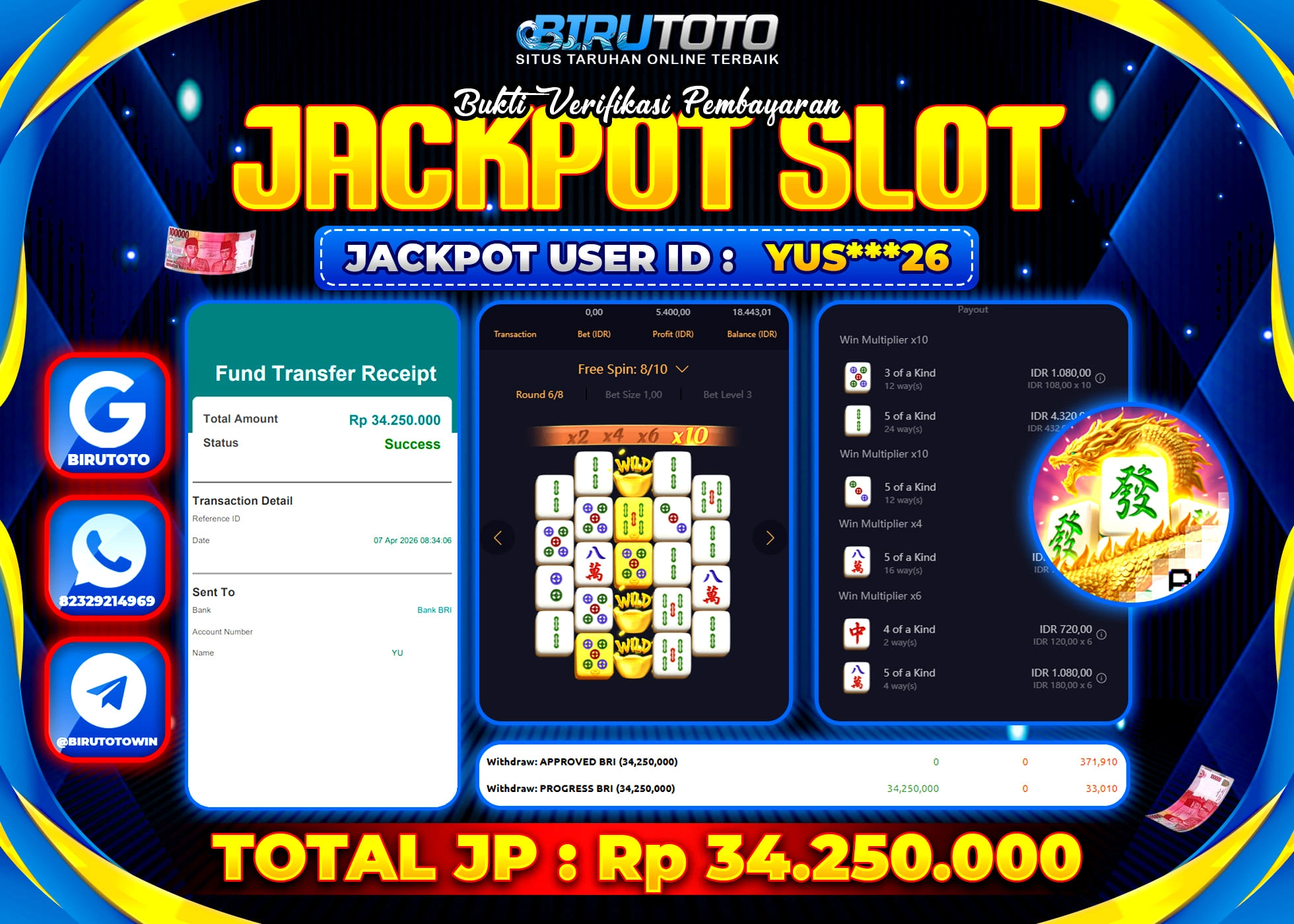 Selamat Kepada Member BIRUTOTO YUS***26 Telah Jackpot Di SLOT MAHJONG WAYS 2