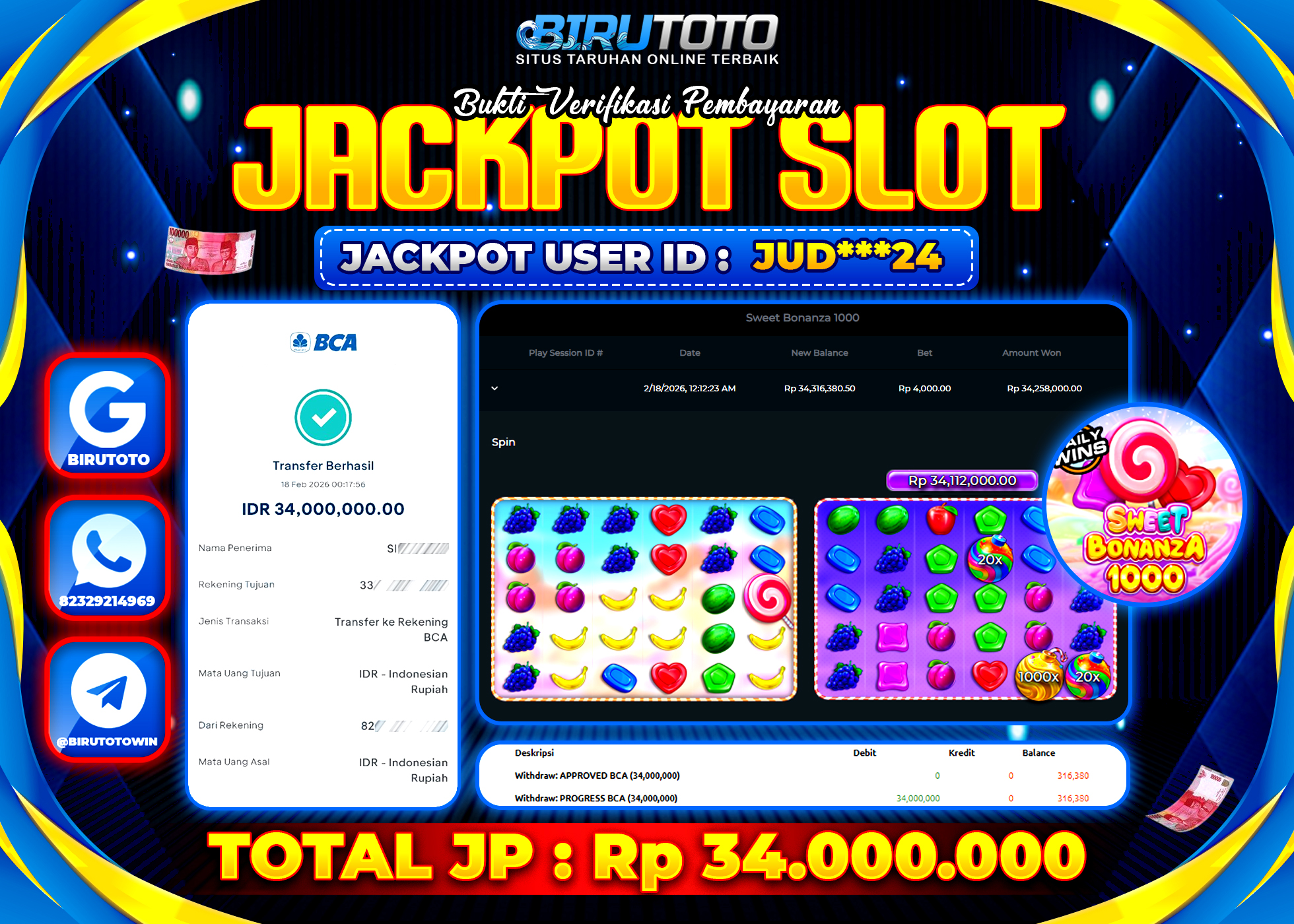 BIRUTOTO JACKPOT SLOT SWEET BONANZA 1000 Rp.34.000.000 LUNAS