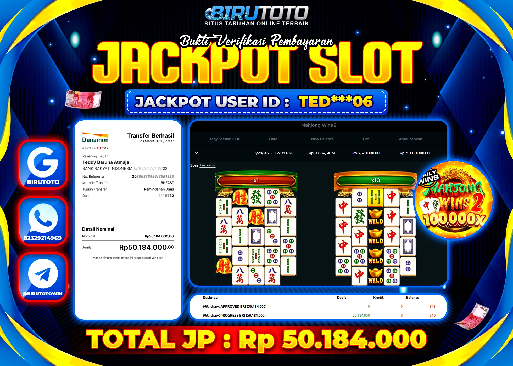 BIRUTOTO JACKPOT SLOT MAHJONG WINS 2 Rp.50.184.000 LUNAS