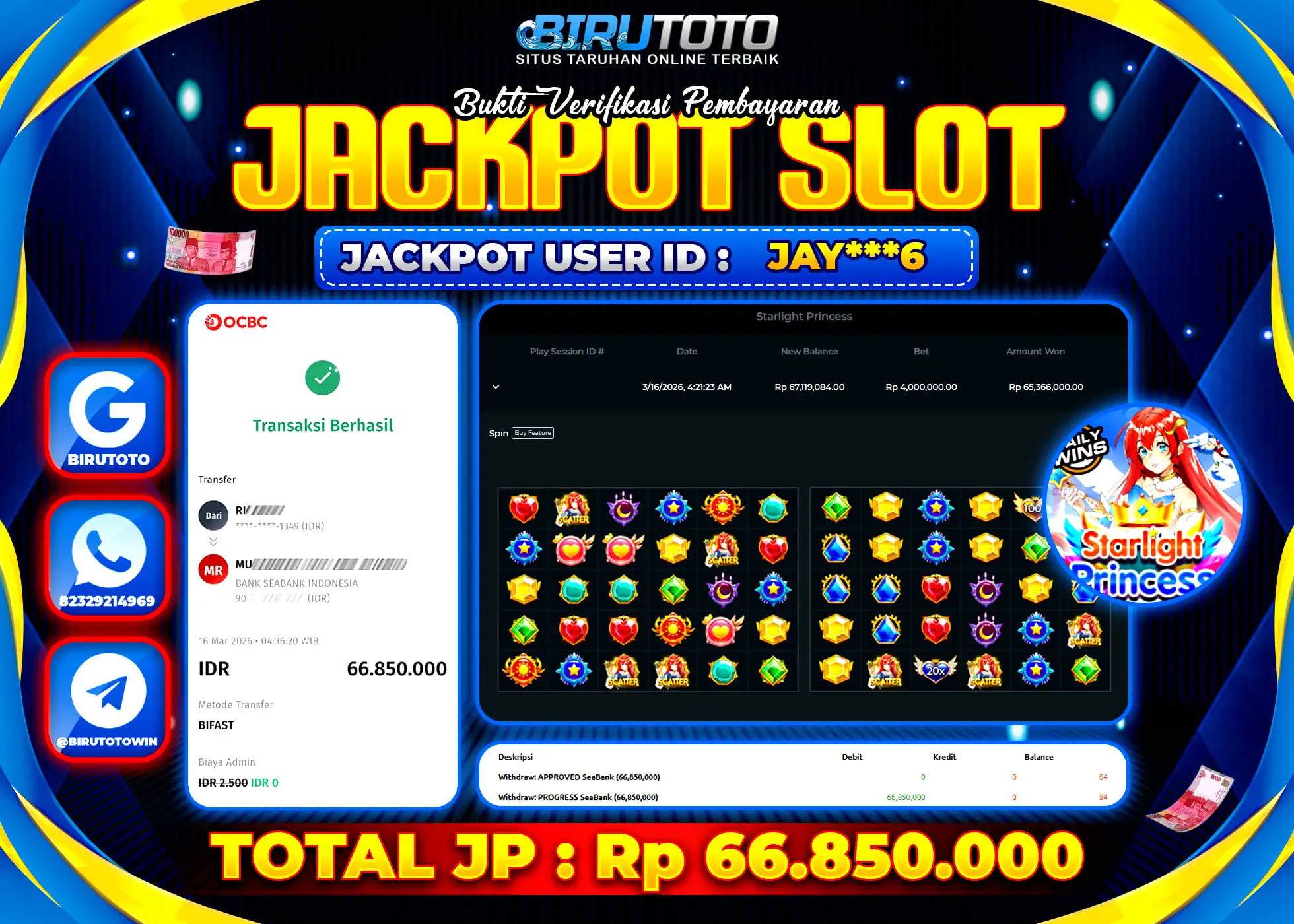 BIRUTOTO JACKPOT SLOT STARLIGHT PRINCES Rp.66.850.000 LUNAS
