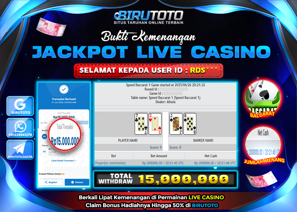 BIRUTOTO JACKPOT LIVE CASINO BACCARAT Rp.15.000.000 LUNAS