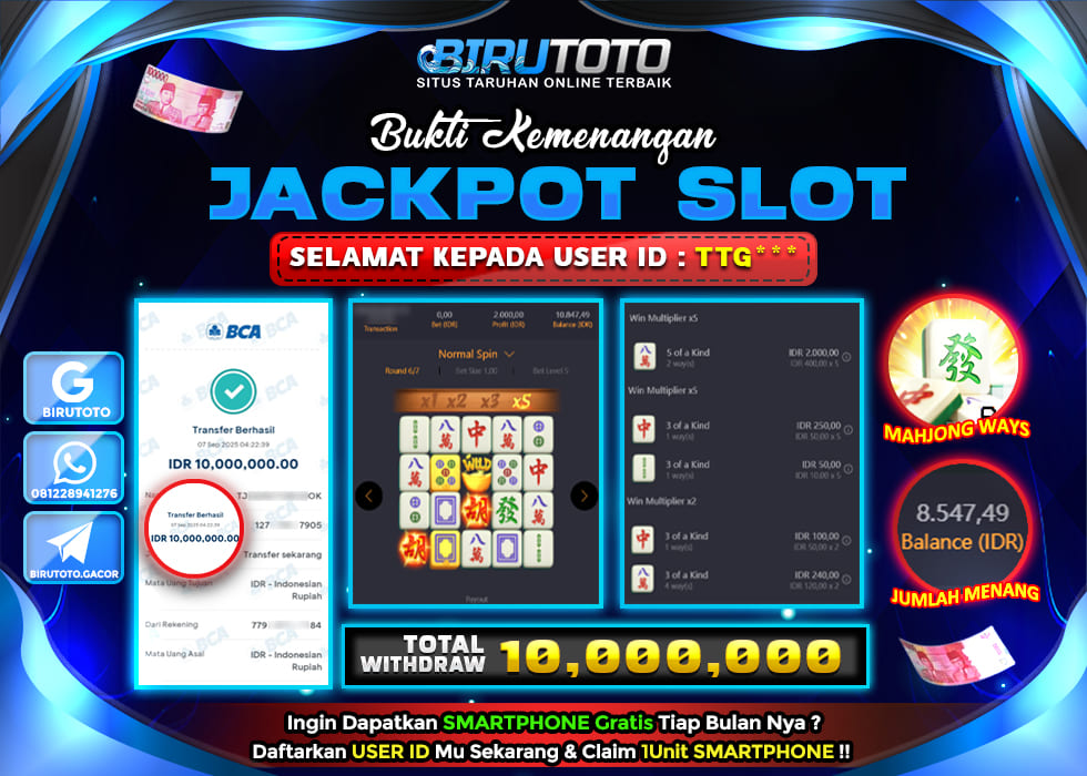 BIRUTOTO JACKPOT SLOT MAHJONG WAYS Rp.10.000.000 LUNAS