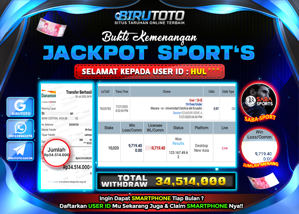BIRUTOTO JACKPOT SPORT SABA SPORTS Rp.7.000.000 LUNAS