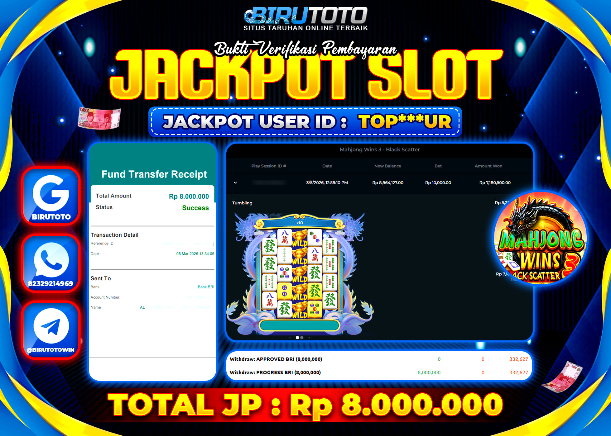 BIRUTOTO JACKPOT SLOT MAHJONG WINS 3 - BLACK SCATTER Rp.8.000.000 LUNAS