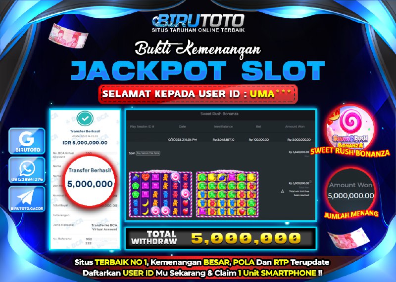 BIRUTOTO JACKPOT SLOT SWEET RUSH BONANZA Rp.5.000.000 LUNAS