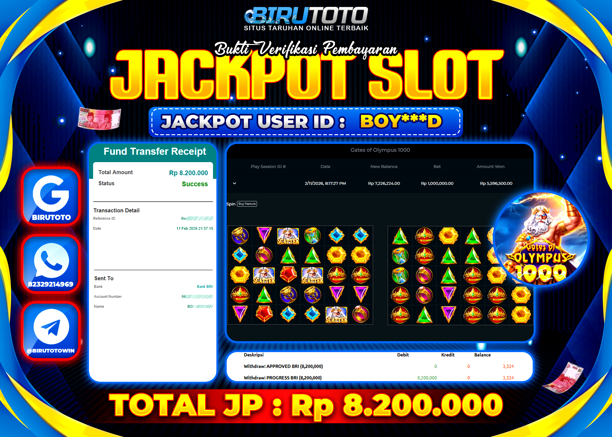 BIRUTOTO JACKPOT SLOT GATES OF OLYMPUS 1000 Rp.8.200.000 LUNAS