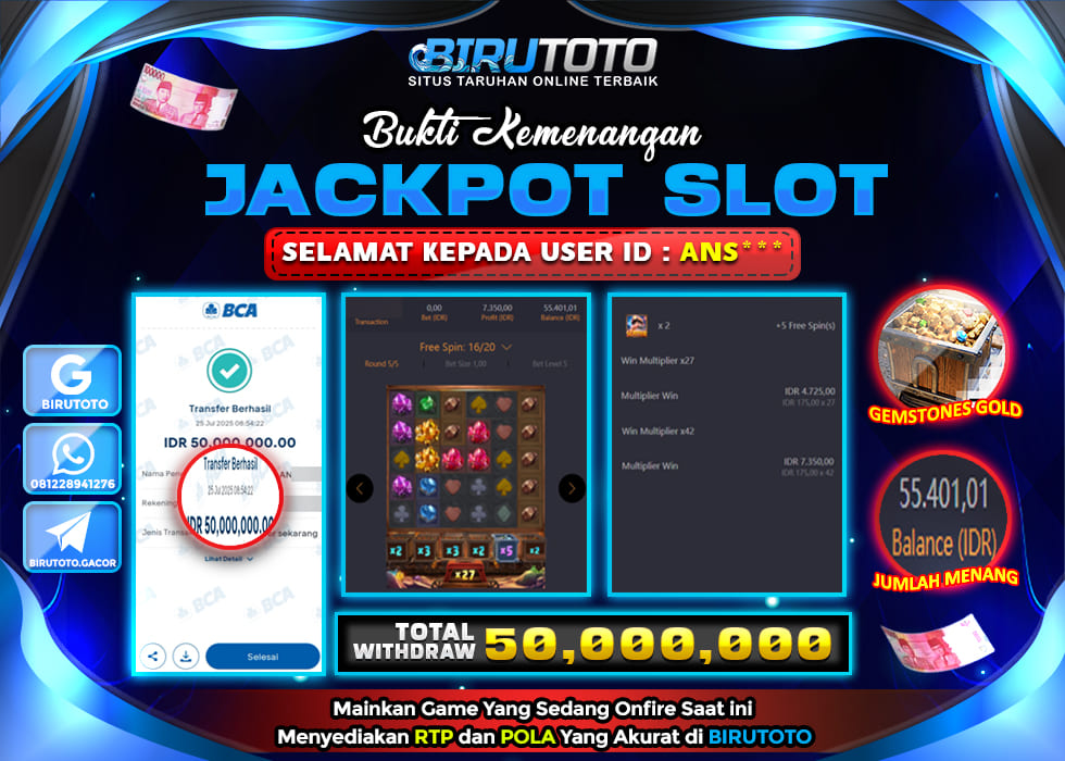 BIRUTOTO JACKPOT SLOT GEMSTONES GOLD Rp.50.000.000 LUNAS