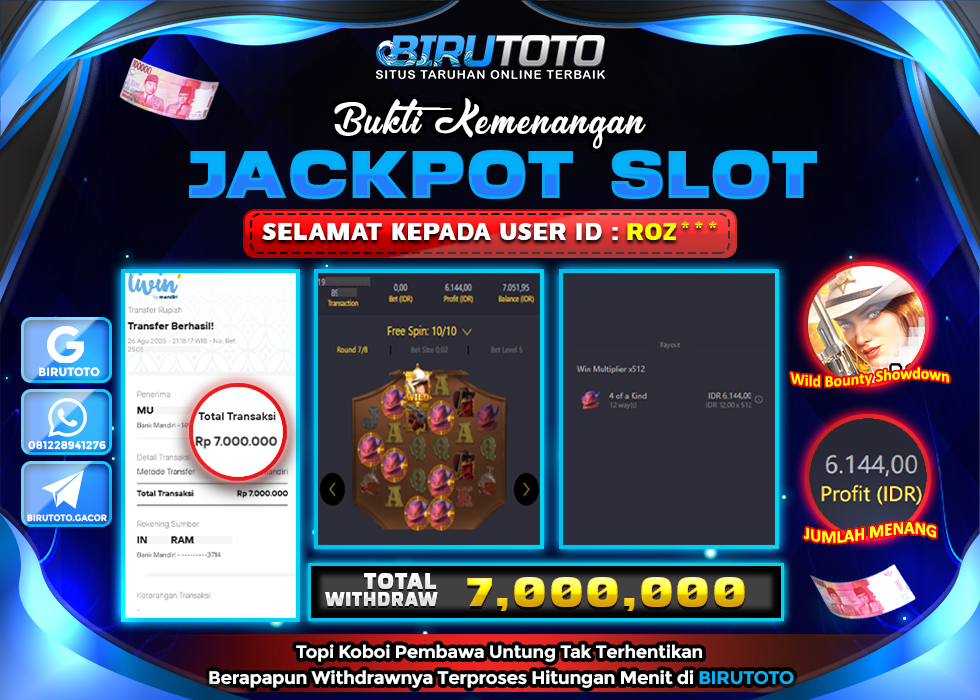 BIRUTOTO JACKPOT SLOT WILD BOUNTY SHOWDOWN Rp.7.000.000 LUNAS