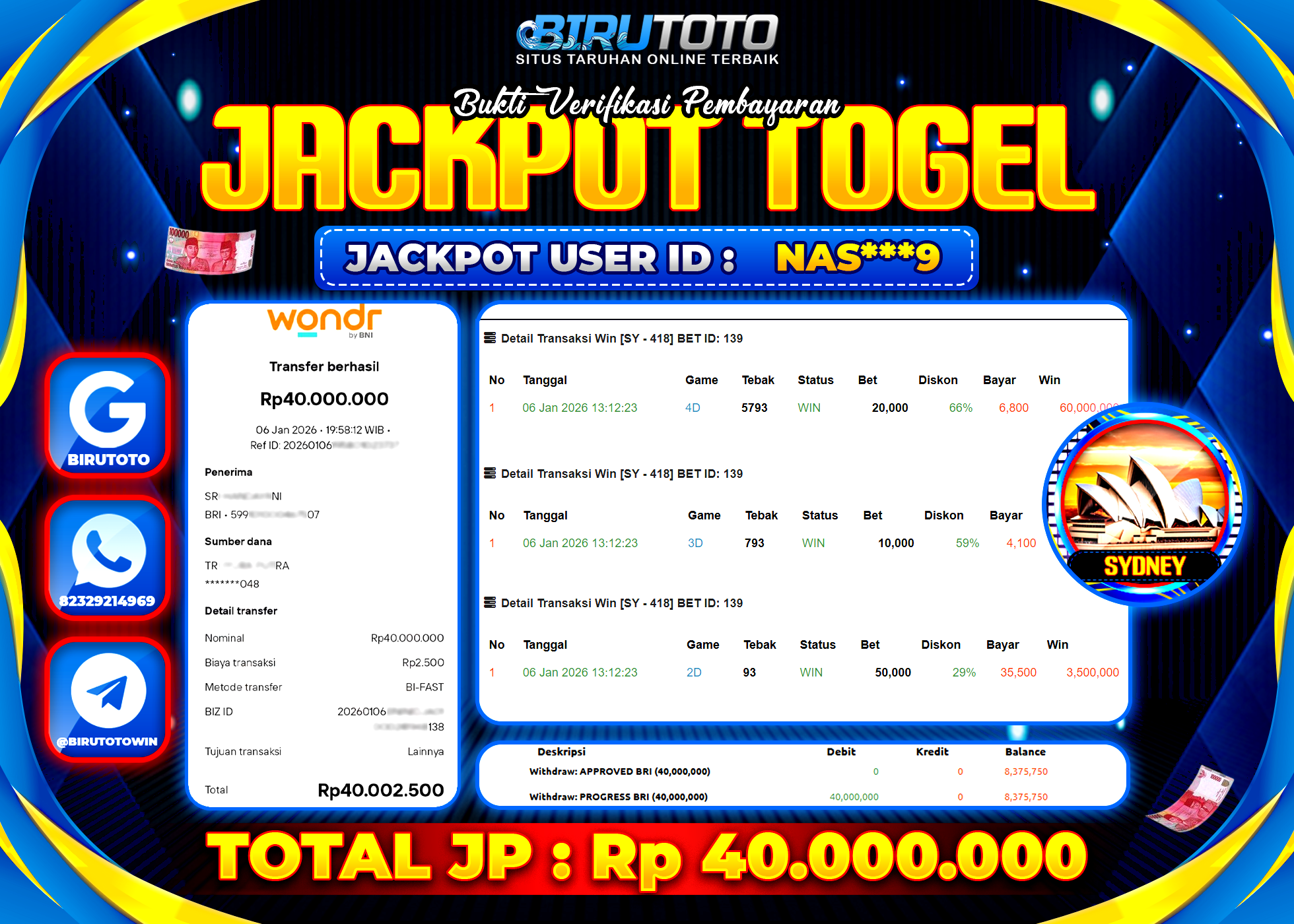 BIRUTOTO JACKPOT TOGEL SYDNEY Rp.40.000.000 LUNAS