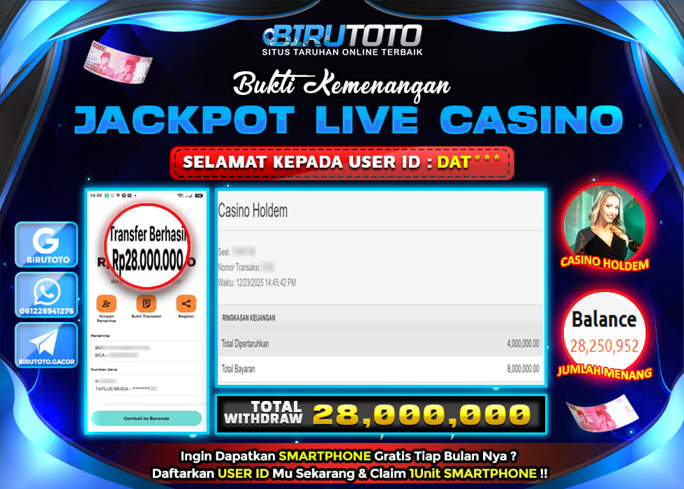 BIRUTOTO JACKPOT LIVE CASINO HOLDEM Rp.28.000.000 LUNAS