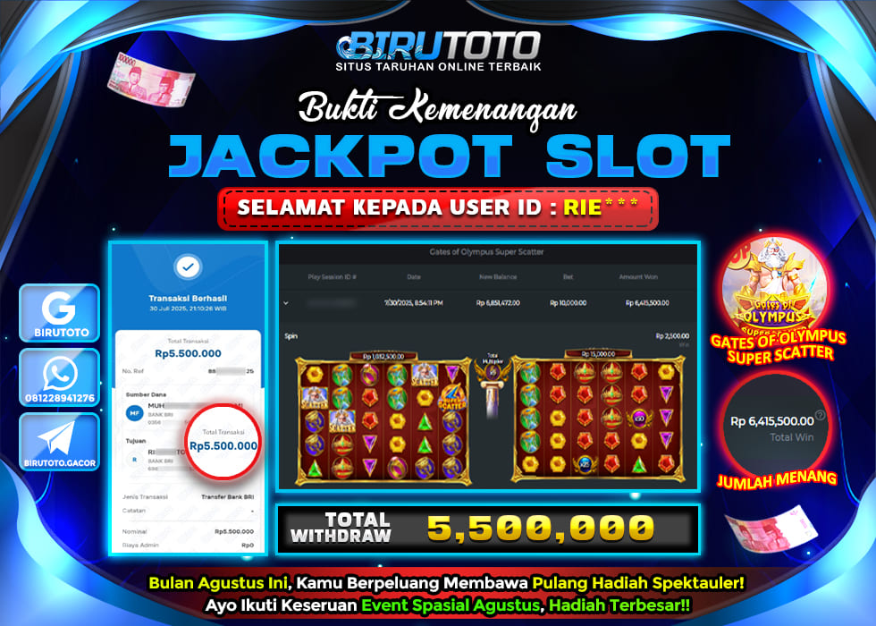 BIRUTOTO JACKPOT SLOT GATES OF OLYMPUS SUPER SCATTER Rp.5.500.000 LUNAS