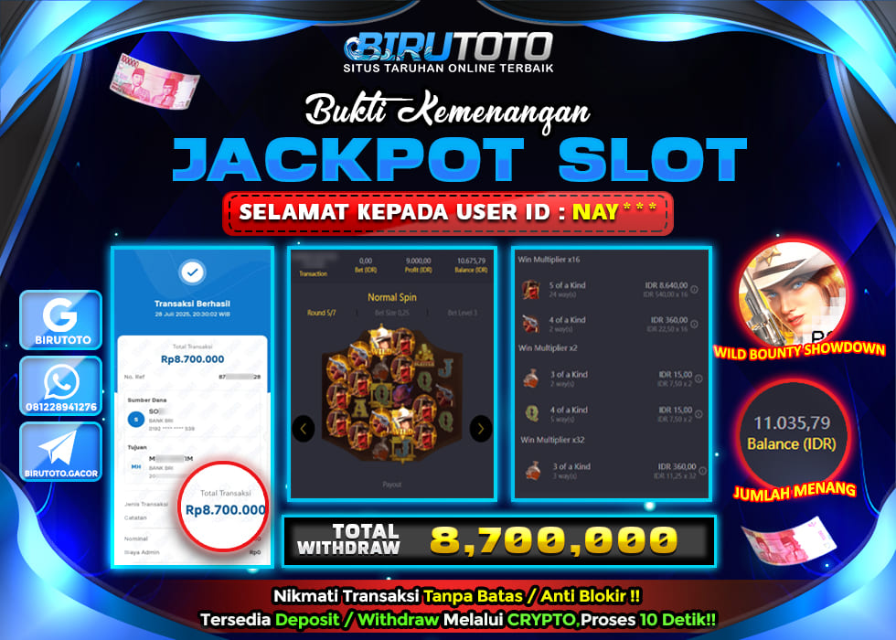 Selamat Kepada Member BIRUTOTO NA**** Telah Jackpot Di SLOT WILD BOUNTY SHOWDOWN