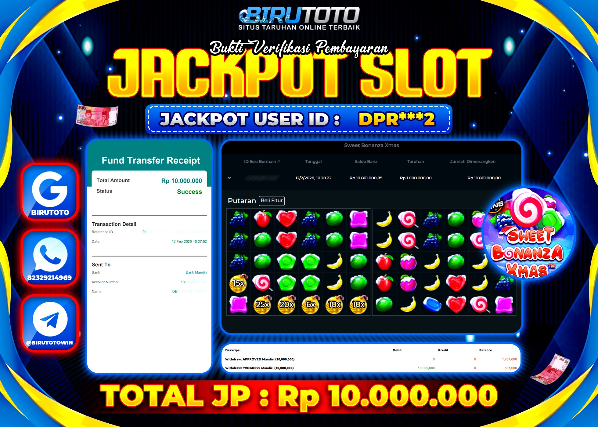 BIRUTOTO JACKPOT SLOT SWEET BONANZA XMAS Rp.10.000.000 LUNAS