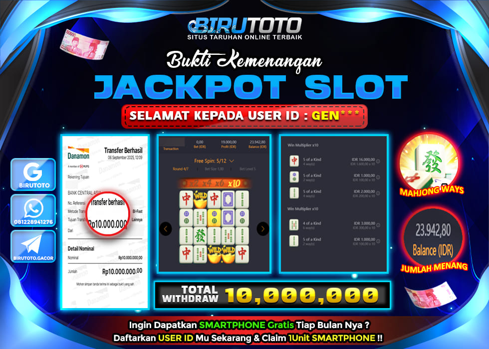 BIRUTOTO JACKPOT SLOT MAHJONG WAYS Rp.10.000.000 LUNAS
