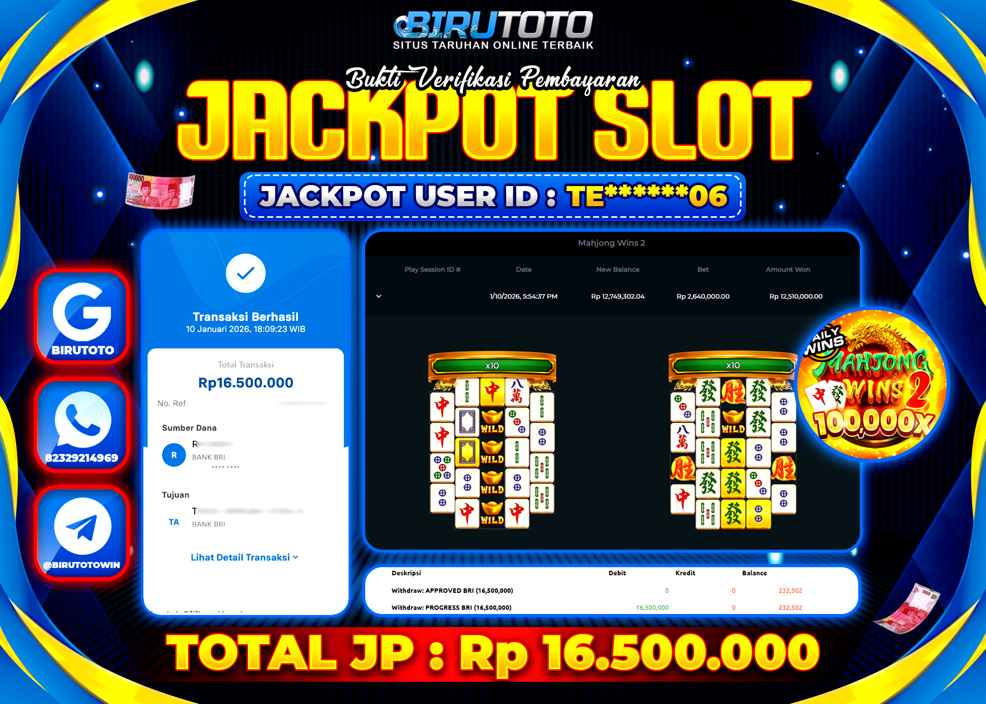 BIRUTOTO JACKPOT SLOT MAHJONG WINS 2 Rp.16.500.000 LUNAS