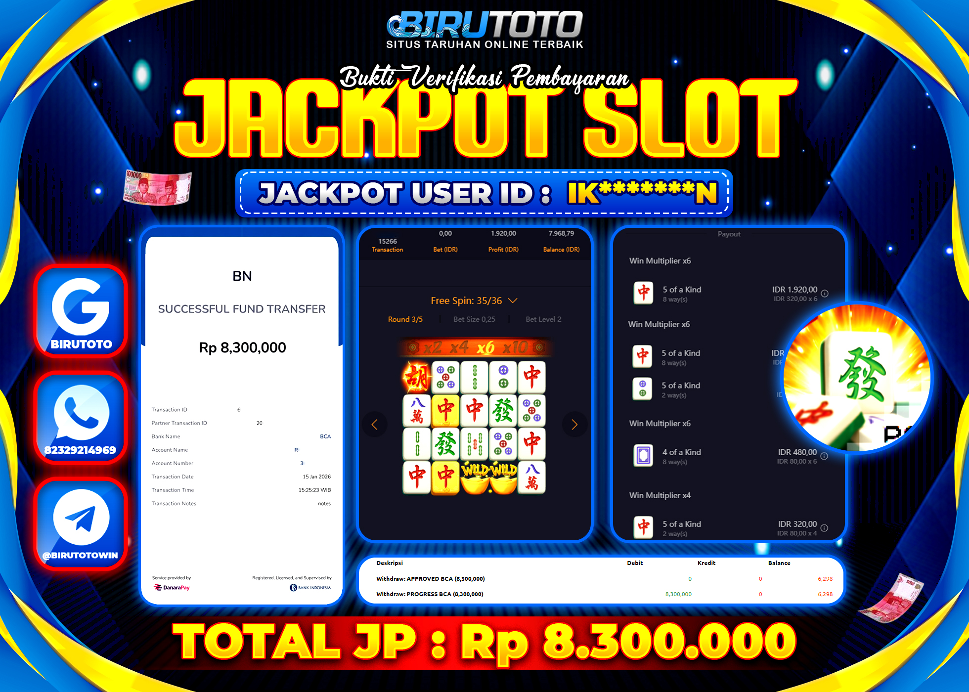 BIRUTOTO JACKPOT SLOT MAHJONG WAYS Rp.8.300.000 LUNAS