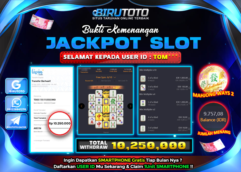 BIRUTOTO JACKPOT SLOT MAHJONG WAYS Rp.10.000.000 LUNAS