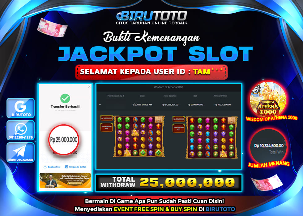 BIRUTOTO JACKPOT SLOT WISDOM OF ATHENA 1000 Rp.25.000.000 LUNAS