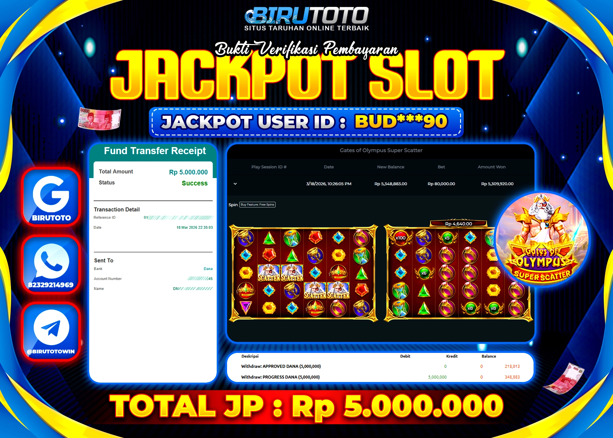 Selamat Kepada Member BIRUTOTO KA**** Telah Jackpot Di SLOT GATES OF OLYMPUS 1000
