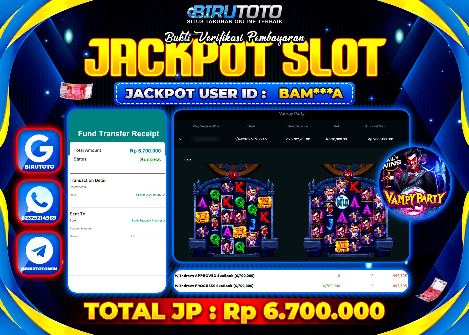 BIRUTOTO JACKPOT SLOT VAMPY PARTY Rp.6.700.000 LUNAS