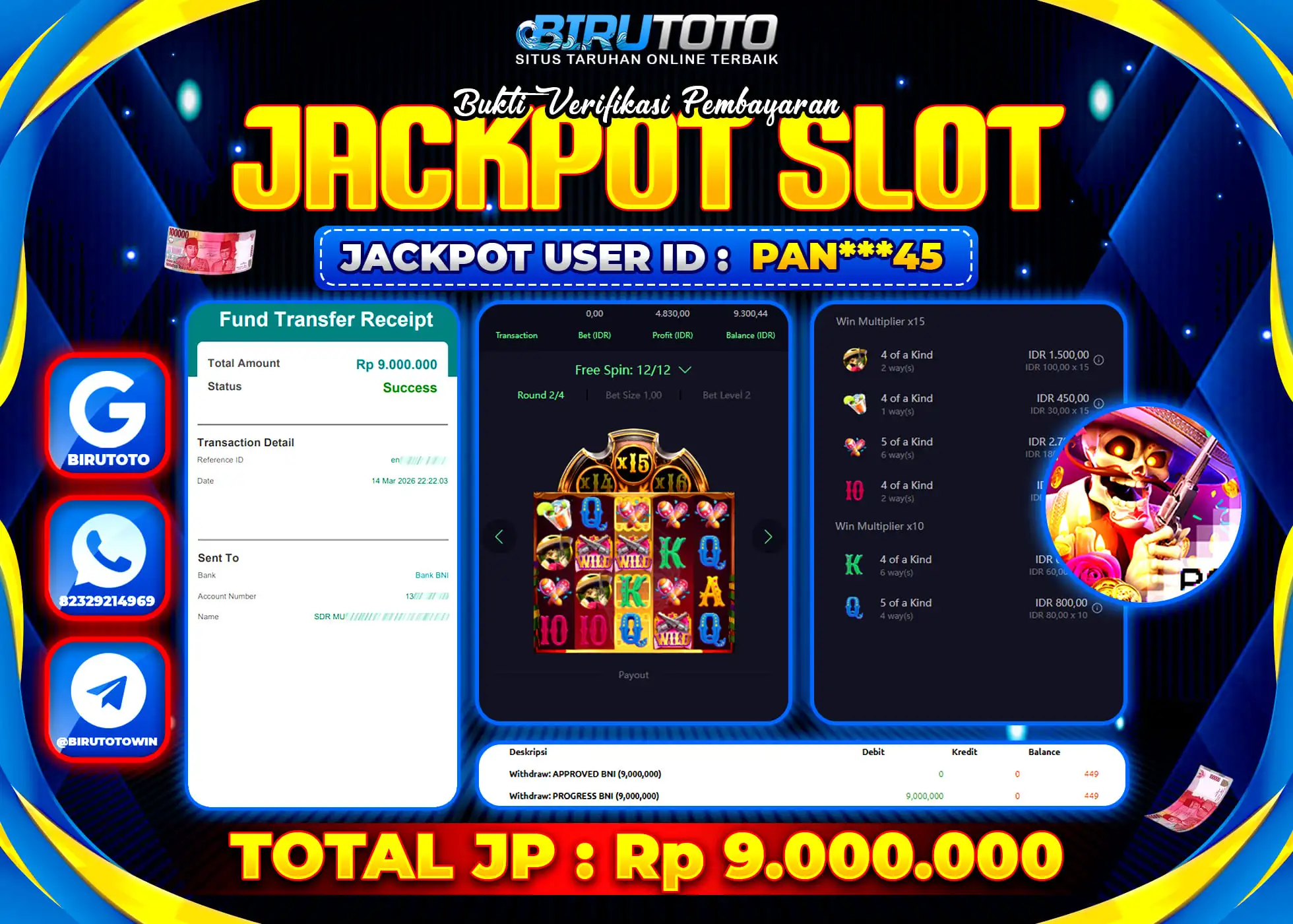 BIRUTOTO JACKPOT SLOT WILD BANDITO Rp.9.000.000 LUNAS
