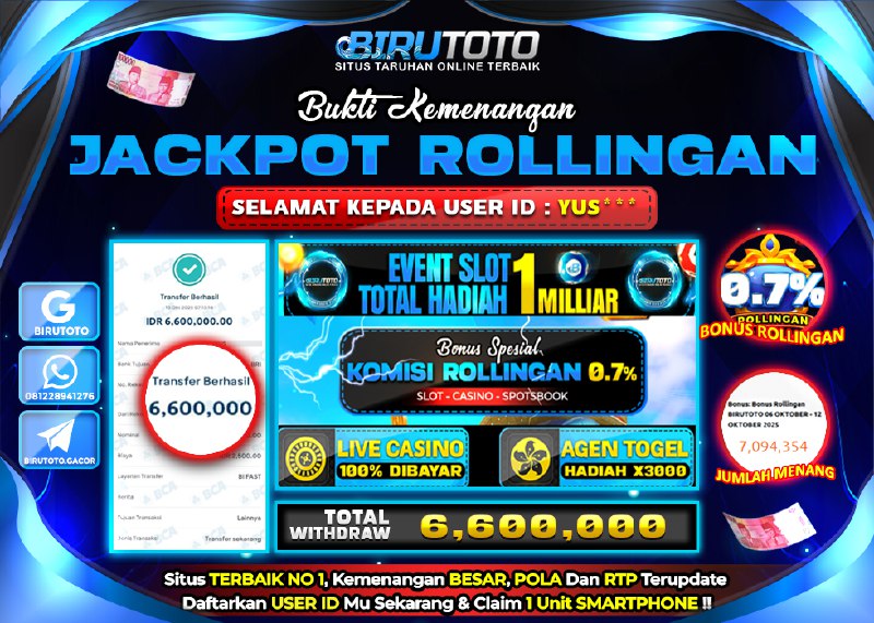 BIRUTOTO JACKPOT BONUS ROLLINGAN Rp.6.600.000 LUNAS