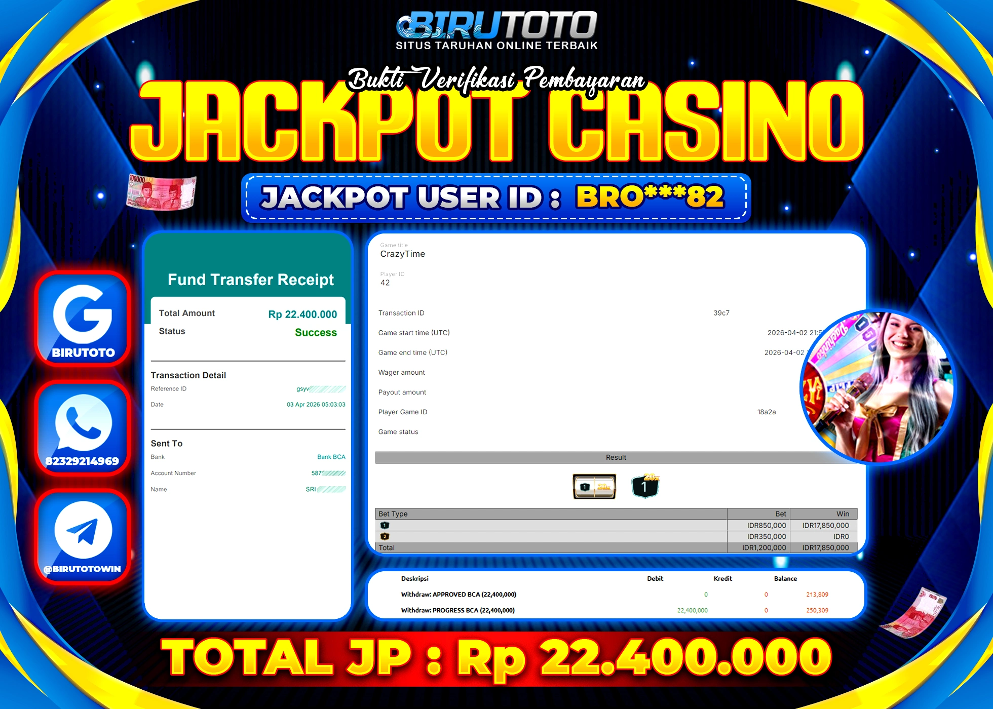 BIRUTOTO JACKPOT LIVE CASINO HIGH FLYER Rp.14.572.000 LUNAS
