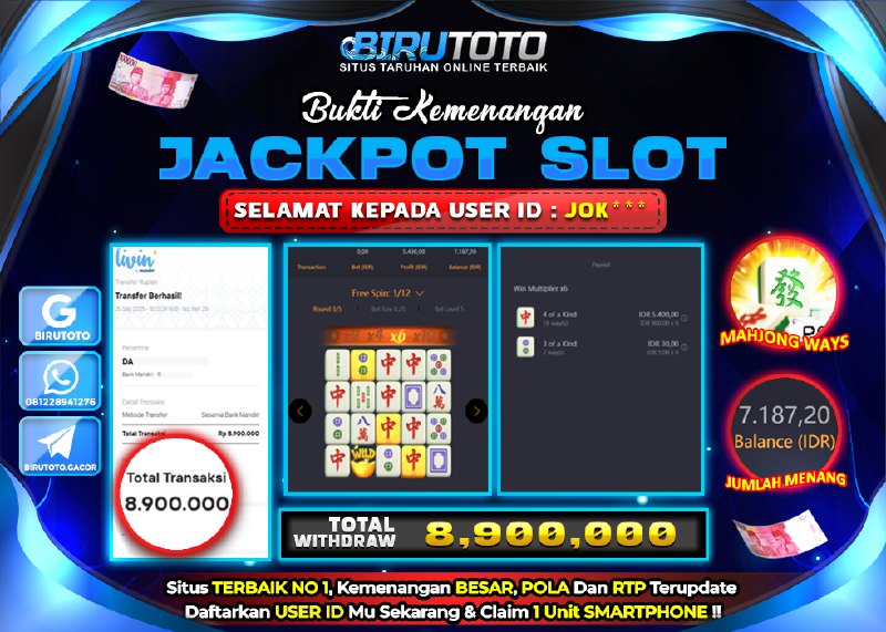 BIRUTOTO JACKPOT SLOT MAHJONG WAYS Rp.8.900.000 LUNAS