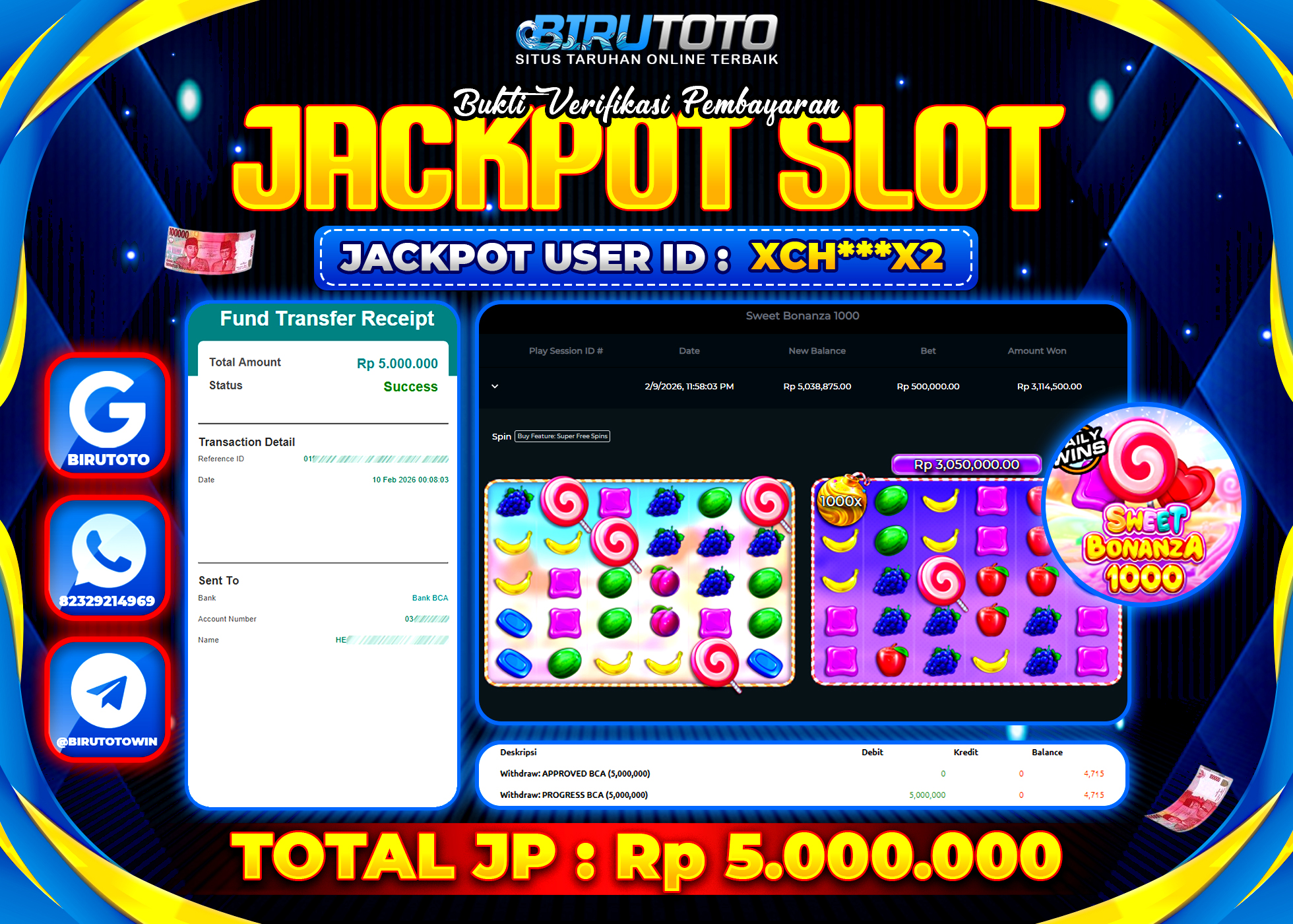 BIRUTOTO JACKPOT SLOT SWEET BONANZA 1000 Rp.5.000.000 LUNAS