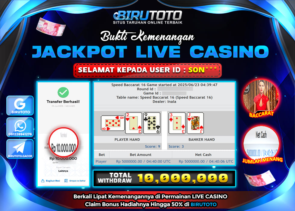 BIRUTOTO JACKPOT LIVE CASINO BACCARAT Rp.10.000.000 LUNAS